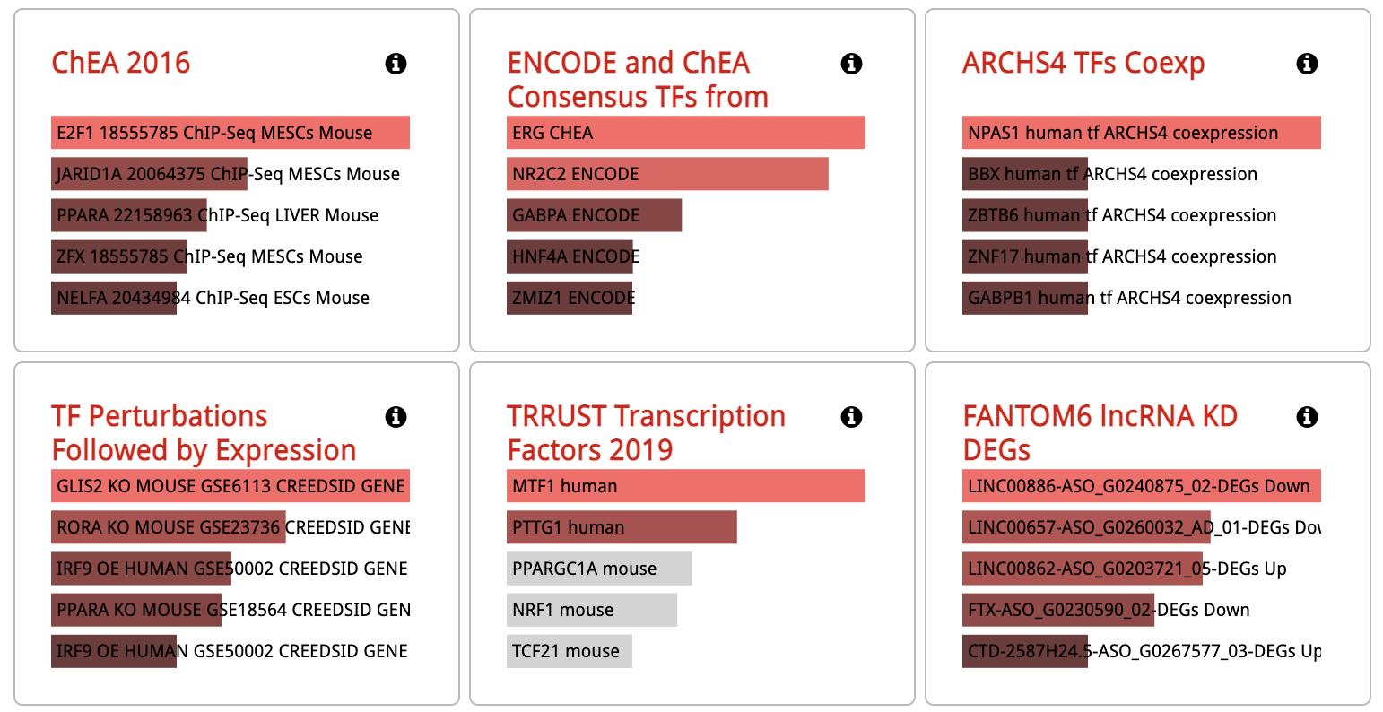 The ChEA3 Appyter (ChIP-X Enrichment Analysis 3) predicts transcription factors (TFs) associated with user-input sets of genes. Discrete query gene sets are compared to ChEA3 libraries of \TF target gene sets assembled from multiple orthogonal 'omics' datasets.